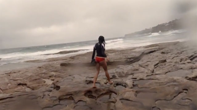 Description : En se baladant sur des rochers au bord d'une plage australienne, cette nageuse va découvrir que le danger ne se situe pas uniquement sous ses pieds.