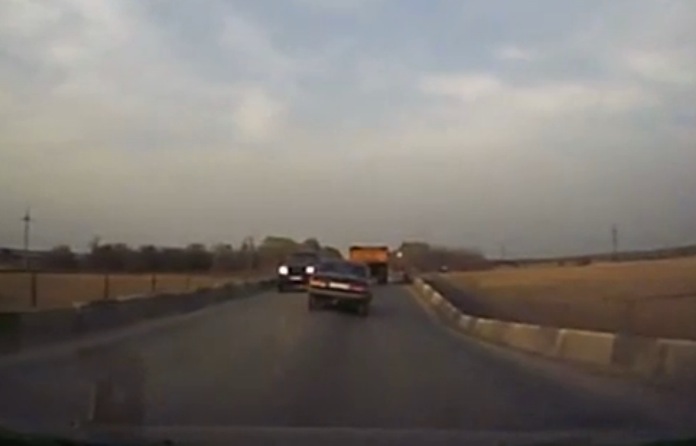 Un automobiliste fait n'importe quoi sur une route de campagne