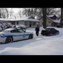 Une Subaru WRX dégage une voiture de police bloquée dans la neige
