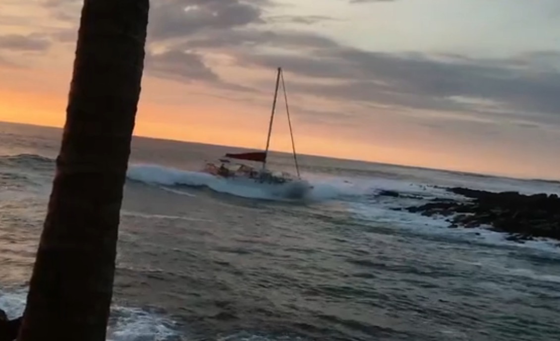 Description : Dans la série "quelqu'un va se faire virer", cette vidéo où l'on peut voir un catamaran se faire emporter jusqu'aux rochers par une vague pas si grosse que ça. Le coucher de soleil est très joli.