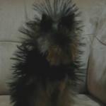 Description : Non non il ne s'agit pas d'un hérisson mais d'un petit yorkshire qui a un peu trop joué avec l'électricité statique. Ou alors il s'est servit du pot de gel de son maitre...